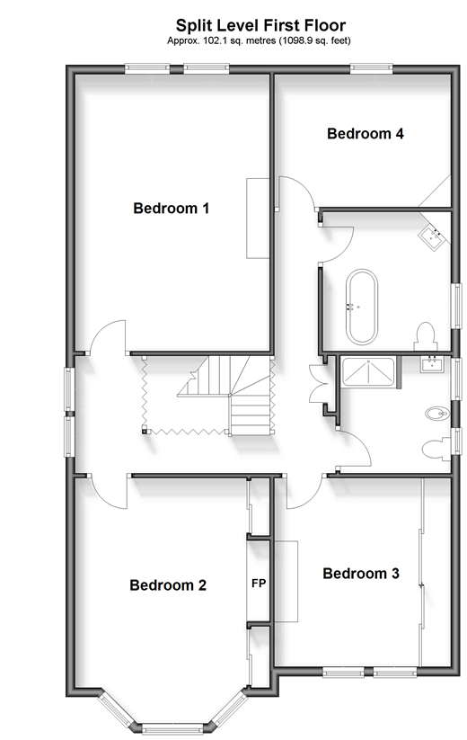 Room sizes:VestibuleHallCloakroomSitting Room: 18'1 x 13'9 (5.52m x 4.19m)Study: 13'5 x 12'5 (4.09m x 3.79m)Kitchen/Diner: 23'0 x 12'10 (7.02m x 3.91m)Lounge: 19'6 x 13'9 (5.95m x 4.19m)SPLIT LEVEL FIRST FLOORLandingBedroom 2: 18'1 x 12'2 (5.52m x 3.71m)Bedroom 3: 13'5 x 10'4 (4.09m x 3.15m)Shower Room: 8'4 x 7'1 (2.54m x 2.16m)Bathroom: 9'11 x 8'11 (3.02m x 2.72m)Bedroom 4: 12'5 x 9'7 (3.79m x 2.92m)Bedroom 1: 19'6 x 13'9 (5.95m x 4.19m)OUTSIDERear GardenFront GardenDriveway