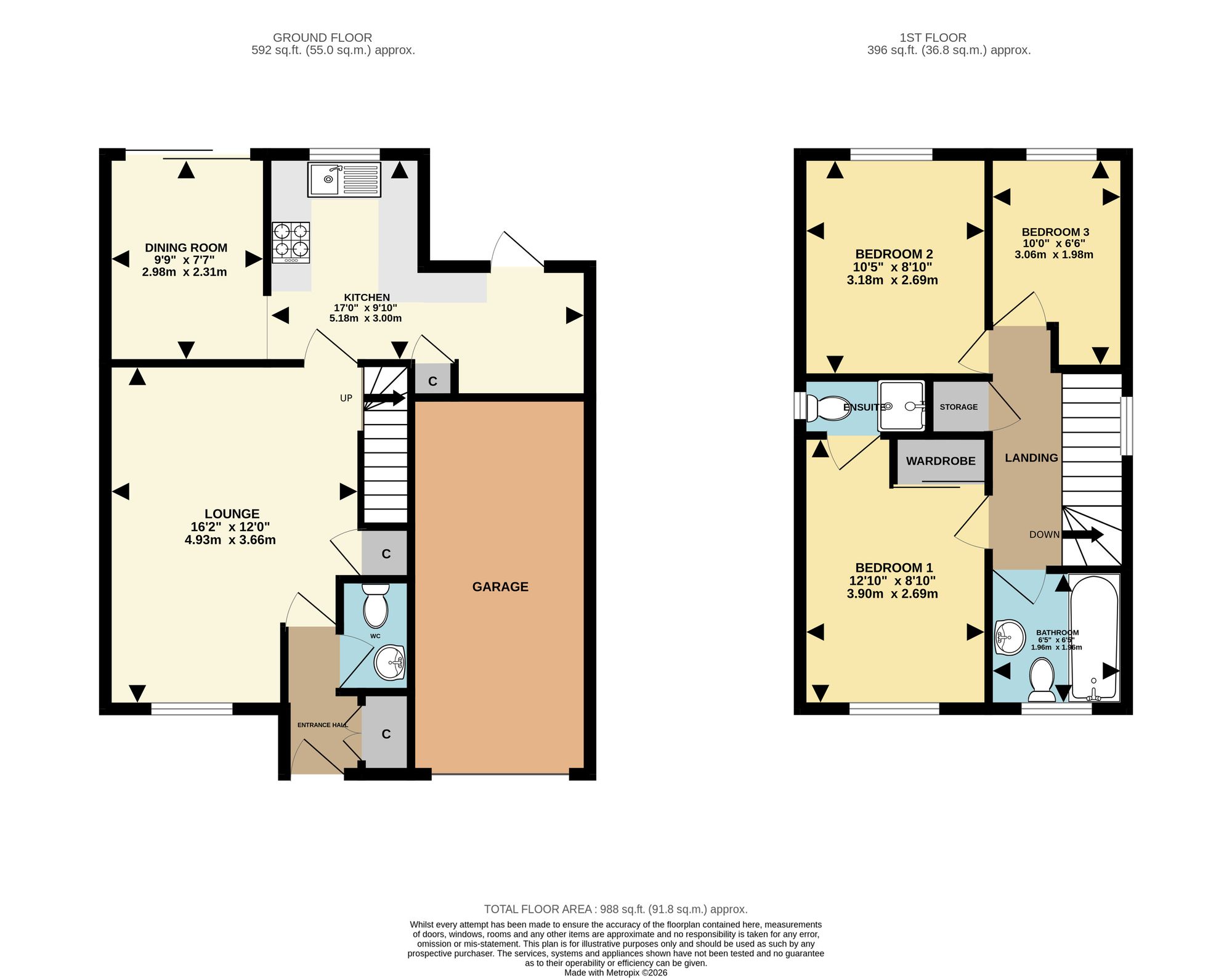 Upstairs, the layout continues to suit modern family life. The main bedroom benefits from a built in wardrobe and its own en suite shower room, offering a touch of privacy and comfort. Bedroom two is a good size double, while the third bedroom provides flexibility as a single room or a work from home space. A modern family bathroom completes the first floor.
