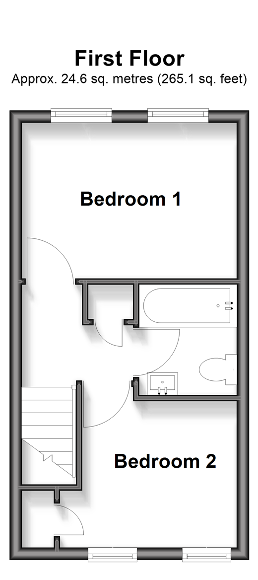Please refer to the footnote regarding the services and appliances. Room sizes:Lounge: 14'11 x 11'1 (4.55m x 3.38m)Kitchen/Living Area: 9'1 x 8'1 (2.77m x 2.47m)LandingBedroom 1: 11'1 x 8'11 (3.38m x 2.72m)Bedroom 2: 9'1 x 8'1 (2.77m x 2.47m)Bathroom: 5'11 x 5'1 (1.80m x 1.55m)Front GardenRear GardenOff Road Parking
