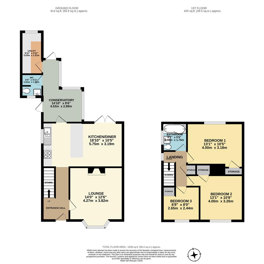 The ground floor features a comfortable lounge and a stylish, modern kitchen/diner to the rear, ideal for both everyday living and entertaining. A bright conservatory provides additional living space and leads through to a convenient cloakroom/WC and separate utility room.