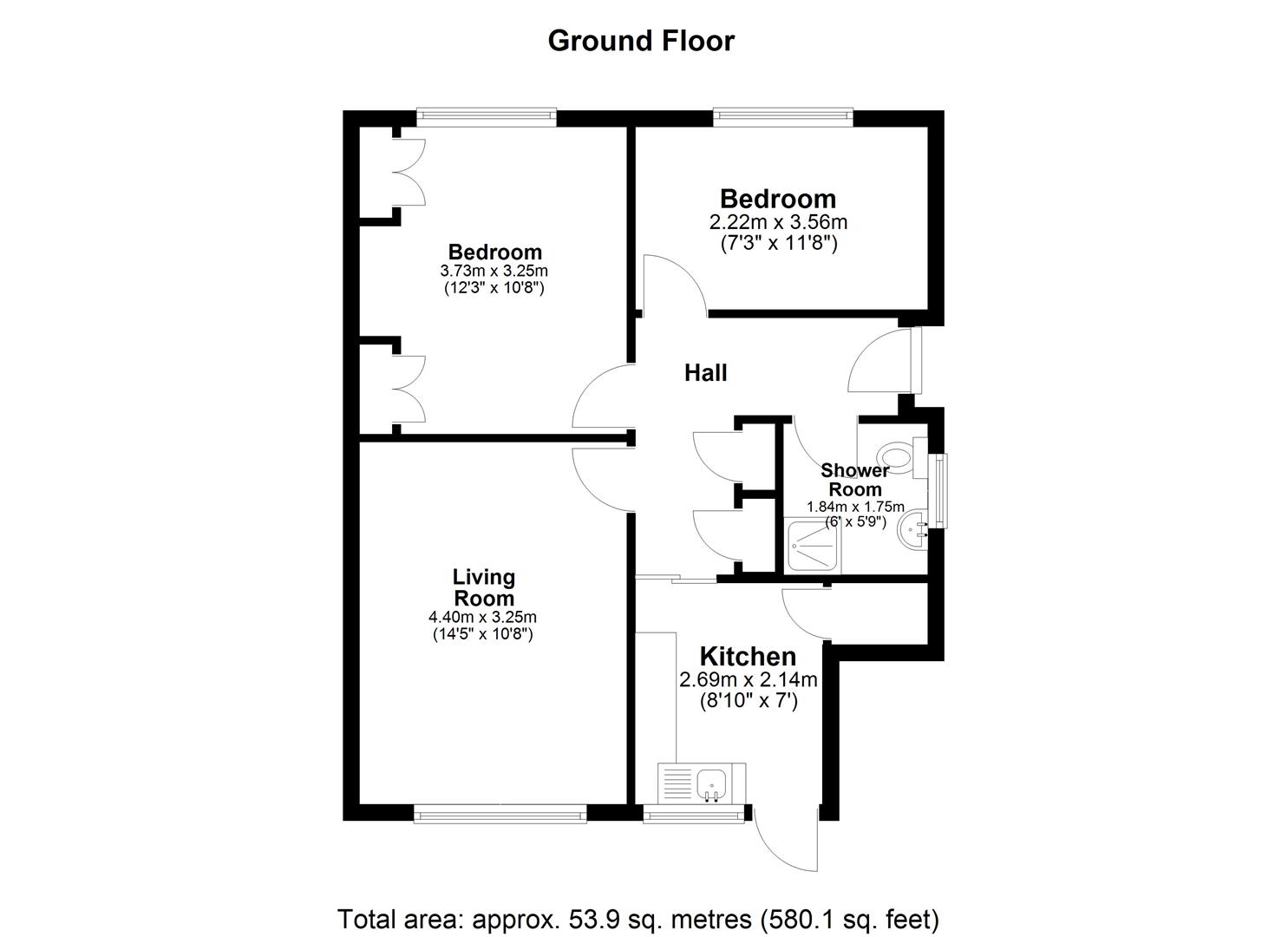 The property offers well-proportioned accommodation comprising an entrance hall, a modern shower room, two double bedrooms, a fitted kitchen, and a comfortable living room. A particular feature is the private garden with patio, lawns and well stocked borders, with a pathway leading to a garage en bloc, providing both convenience and additional storage.