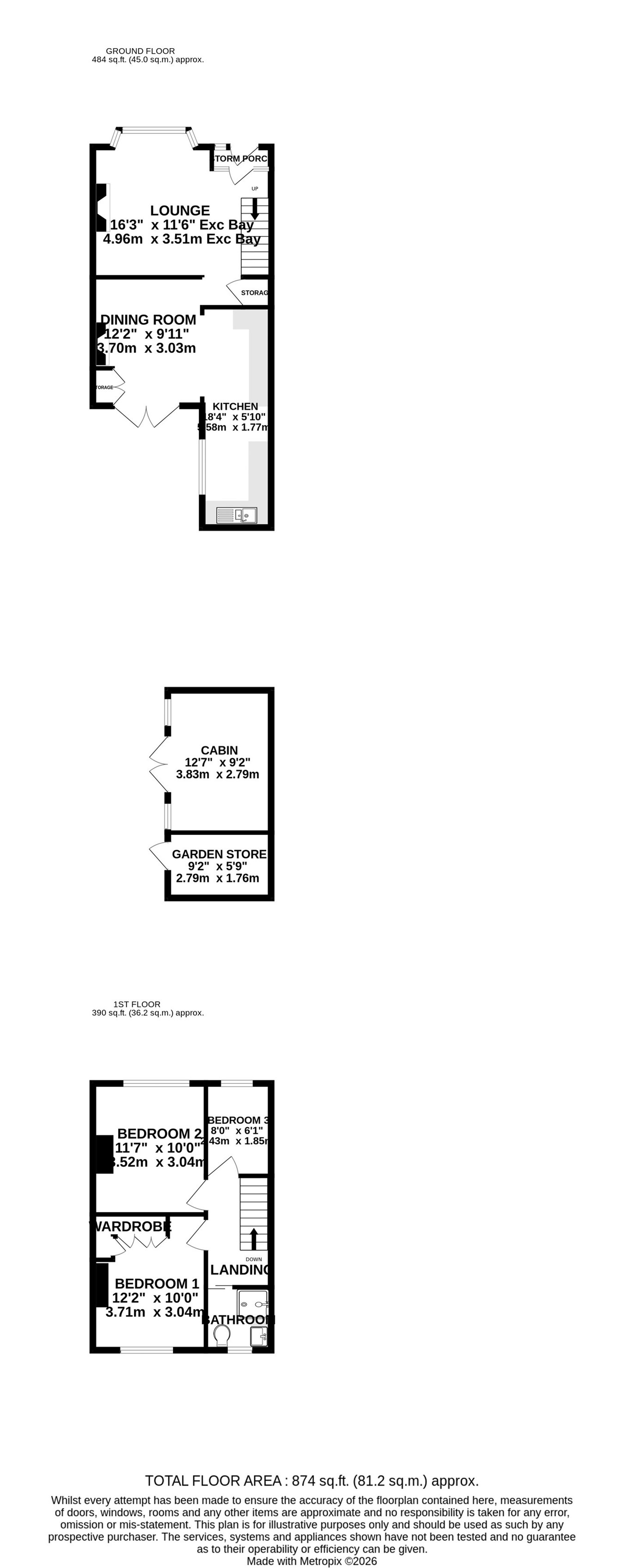 9' 2" x 5' 9" (2.79m x 1.75m)