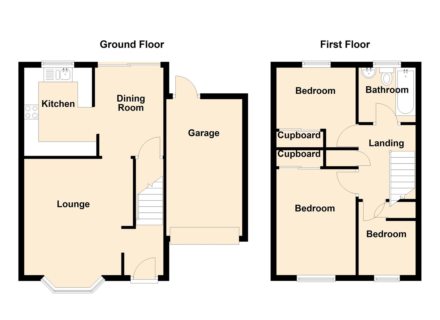 The ground floor comprises a spacious lounge, a separate dining room and a fitted kitchen, providing practical and versatile living space for modern family life. To the first floor are three well-proportioned bedrooms and a family bathroom.