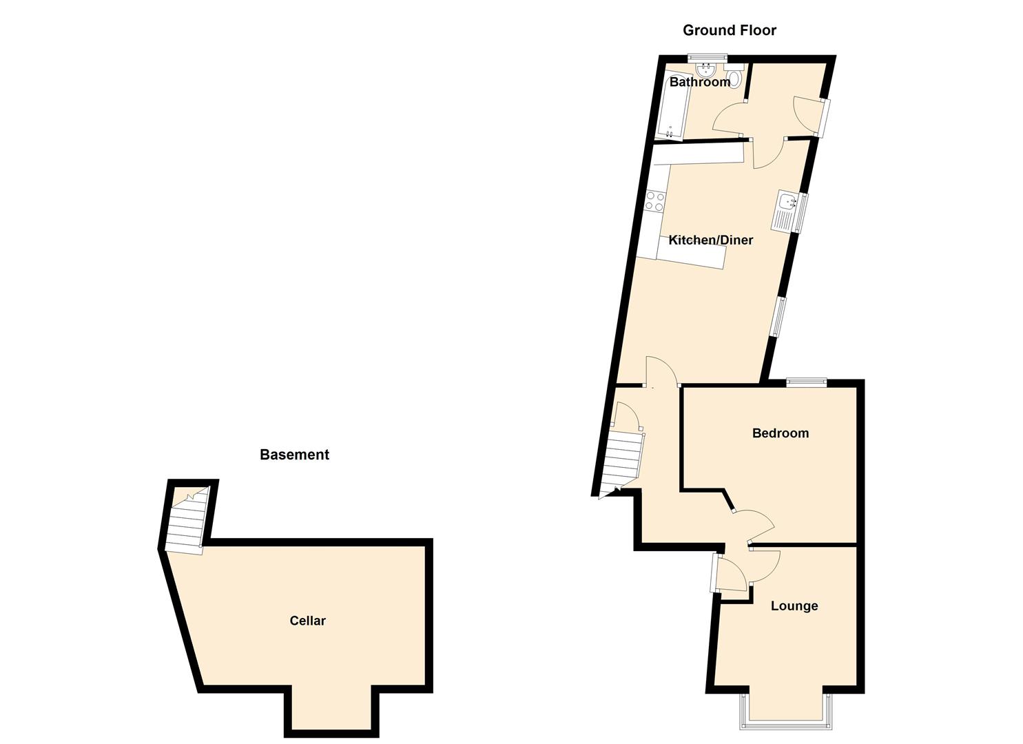 The accommodation comprises a spacious double bedroom, a comfortable living room, a generous kitchen/diner, and a separate family bathroom. Additional benefits include a large cellar providing useful storage space, along with a good-sized rear garden.
