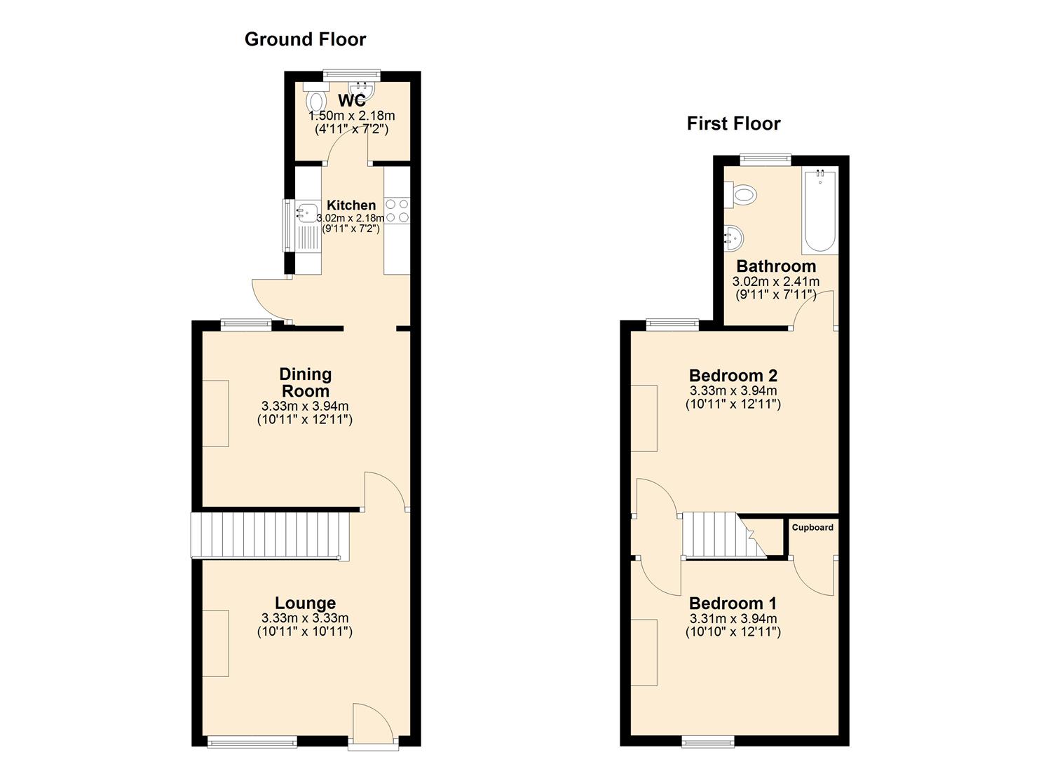 Upstairs comprises two good-sized bedrooms and a family bathroom.